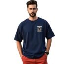 - DESIGN: Navy blue oversized t-shirt featuring a unique pug-themed graphic print on the chest for a stylish casual look